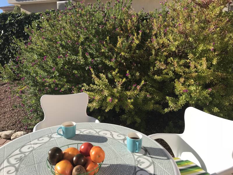 In de grote, kindvriendelijke tuin staan o.a. palmen, citrusbomen, oleanders en mimosa. De tuin is afsluitbaar. Op de royale terrassen kunt u naar keuze in zon of schaduw vertoeven. De woning telt vier terrassen: